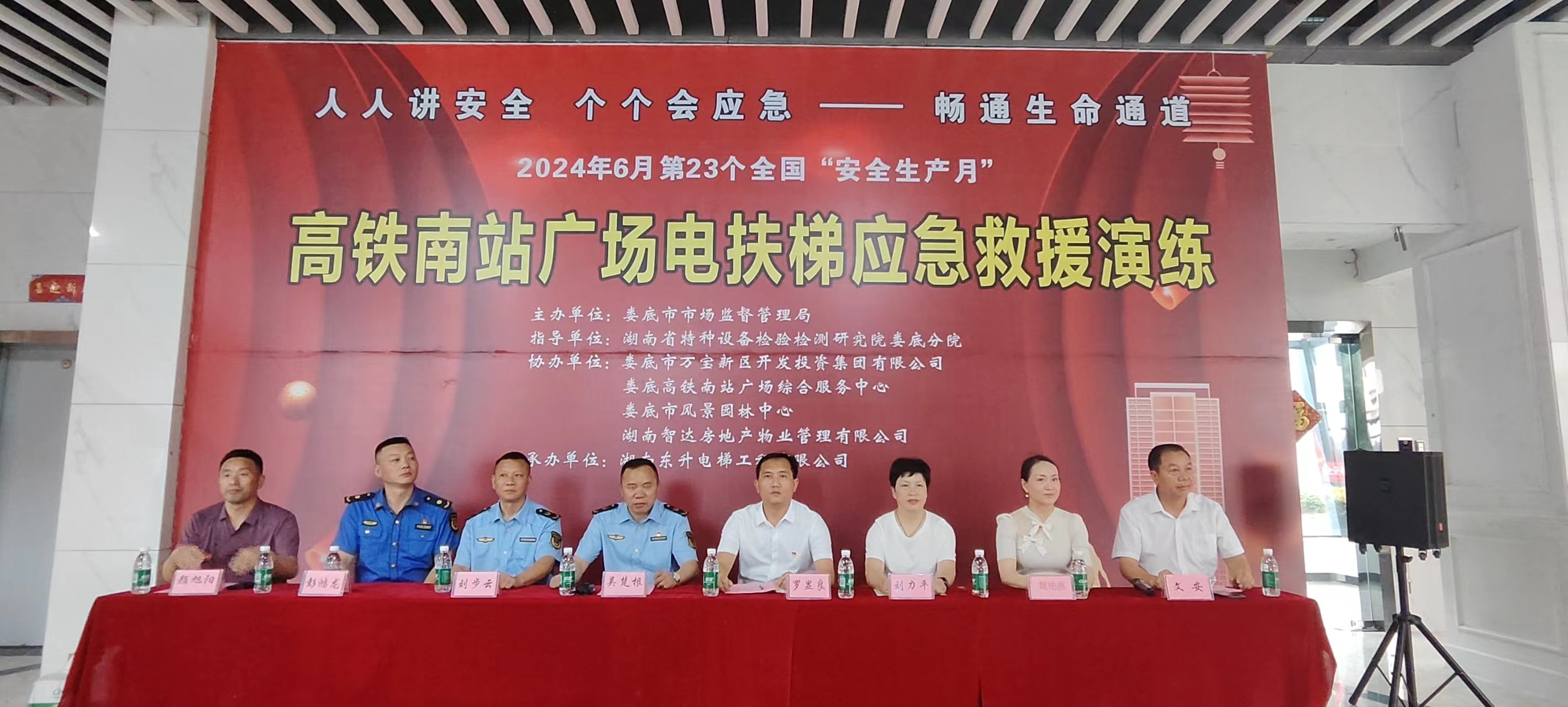 為增強(qiáng)安全生產(chǎn)意識(shí),聚焦應(yīng)對(duì)特種設(shè)備事故的快速反應(yīng)和高效處置能力,6月17日上午10點(diǎn),我市在高鐵南站廣場(chǎng)舉行電扶梯應(yīng)急救援演練。本次活動(dòng)由婁底市市場(chǎng)監(jiān)督管理局主辦,婁底市萬寶新區(qū)開發(fā)投資集團(tuán)有限公司、婁底市高鐵南站廣場(chǎng)綜合服務(wù)中心、婁底市風(fēng)景園林中心、湖南智達(dá)房地產(chǎn)物業(yè)管理有限公司協(xié)辦,湖南東升電梯工程有限公司承辦,湖南省特種設(shè)備檢驗(yàn)檢測(cè)院婁底分院進(jìn)行現(xiàn)場(chǎng)指導(dǎo)。