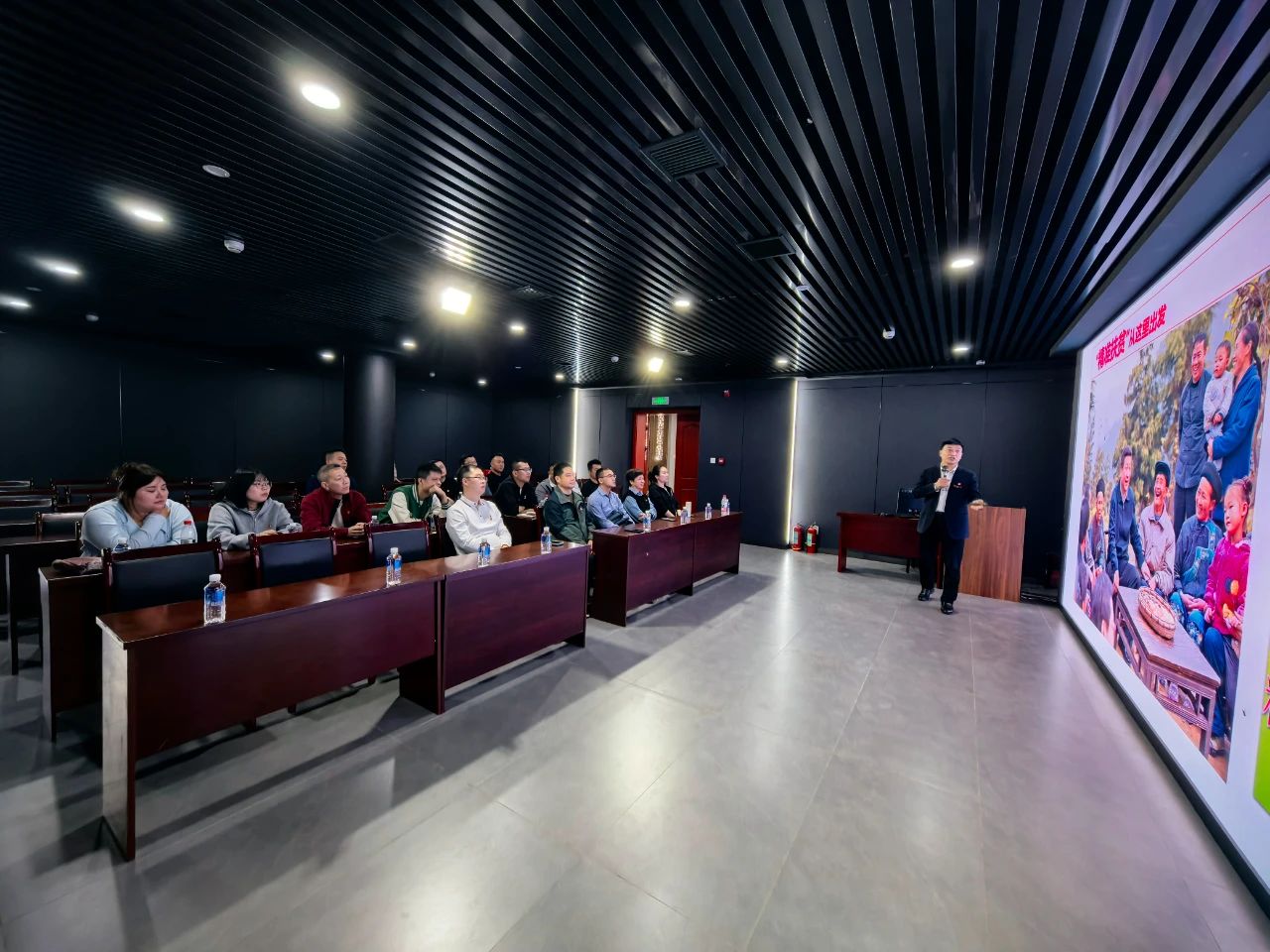 活動(dòng)首站,十八洞村原村主任施進(jìn)蘭以“牢記囑托促發(fā)展 同心筑夢創(chuàng)未來——精準(zhǔn)扶貧從十八洞出發(fā)”為題,為全體黨員講述了一堂生動(dòng)的主題黨課。他結(jié)合親身經(jīng)歷,講述了習(xí)近平總書記在2013年考察十八洞村時(shí)提出的“精準(zhǔn)扶貧”重要理念的深刻內(nèi)涵,闡述了“投入有限、民力無窮、自力更生、建設(shè)家園”的十八洞精神,分享了當(dāng)?shù)匾渣h建引領(lǐng)脫貧攻堅(jiān)、發(fā)展特色產(chǎn)業(yè)、推進(jìn)鄉(xiāng)村振興的實(shí)踐經(jīng)驗(yàn)。