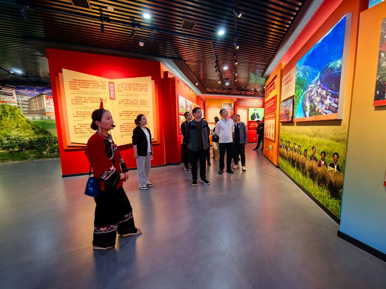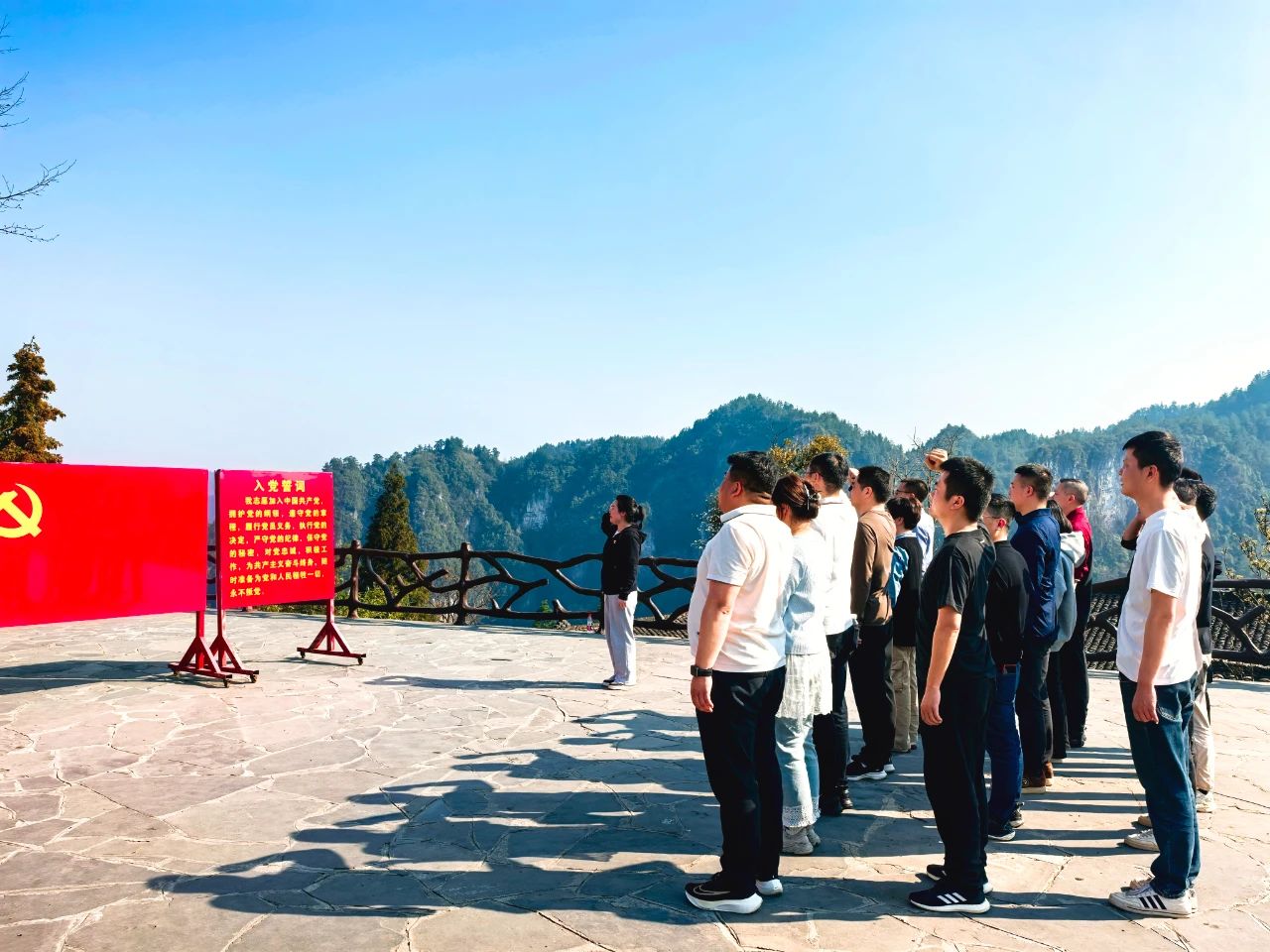 隨后,大家在講解員的帶領(lǐng)下,參觀了精準(zhǔn)扶貧主題陳列館,重走習(xí)近平總書記考察路線,還參觀了苗繡非遺扶貧工坊等標(biāo)志性場所,親身感受了十八洞村在黨的關(guān)懷下,從貧窮落后小山村到脫貧攻堅(jiān)樣板村的美麗蛻變。最后,全體黨員在精準(zhǔn)扶貧廣場重溫入黨誓詞,鏗鏘有力的誓言在美麗的山谷回蕩,傳遞著全體黨員們“聽黨話、跟黨走”的堅(jiān)定信念。